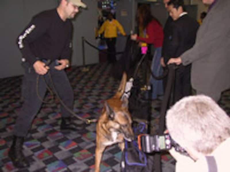 | 警察犬に荷物のチェックをしてもらっている様子です |