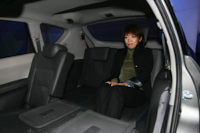| サードシートの着座。撮影用にセカンドシートのシートバックは倒しています |