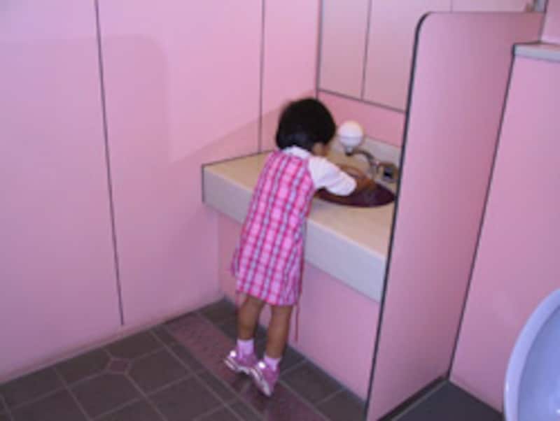 またこのコーナーの中には、子供が一人でも手が洗える、低めの洗面台も用意されていてまさに、子供が自分でトイレができようになっています。