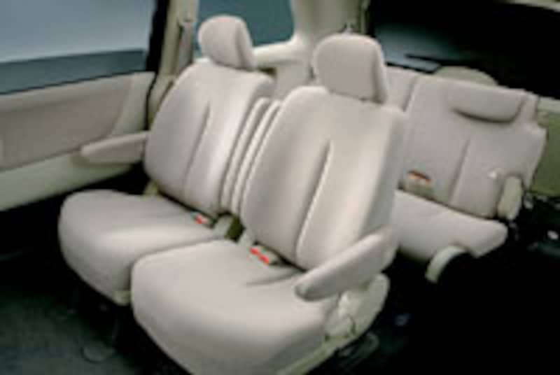 また通常はセパレートのキャプテンシートのようにして使えるセカンドシートが、横方向にスライドさせるとベンチシート風になるため、合計で8人の乗車定員が設定されているが、ヘッドレストや3点式シートベルトは6人分しか用意されていない。実質的には6人乗りのクルマと考える必要がある。日本のミニバンでは人数分のヘッドレストや3点式シートベルトが用意されないのが当たり前のようになっているが、これでは安全軽視と言われても仕方がない。