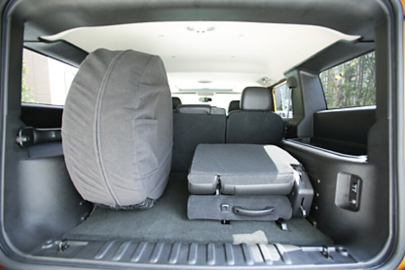| カーゴルームに装備されるのは、スペアタイヤと取り外しも可能な6座目のシート。 撮影:松本明彦 |