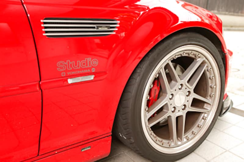 | M3ルックのオーバーフェンダー。ドレスアップやチューニングは「studie +YOKOHAMA-」にお願いしている。 |