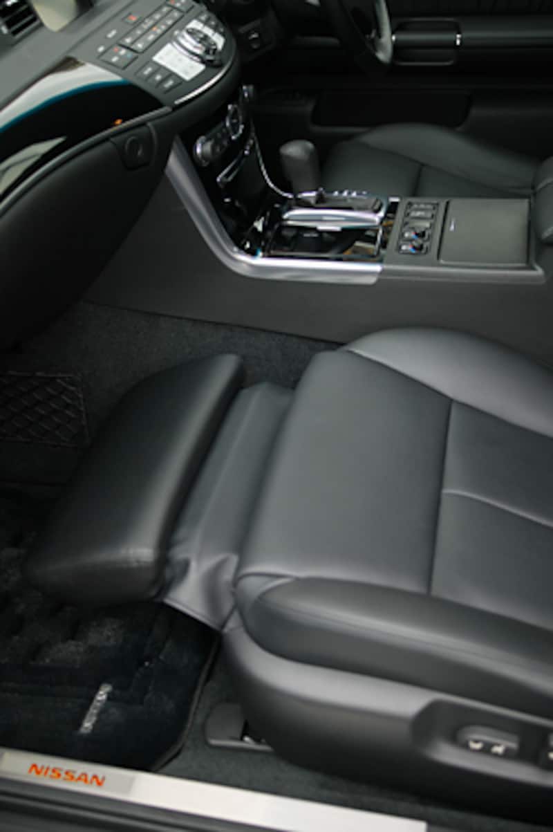 | 助手席のパワーオットマンは、同乗者に優しい装備だ。 |