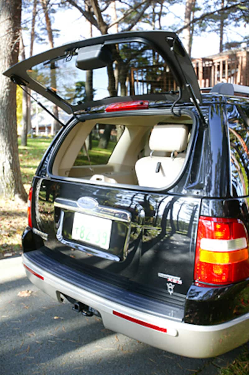 大きく開くリアゲートだけでなく、開閉式のリアウィンドウからもアクセスできるカーゴルームは、3列目シートを倒しただけで、なんと2370Lもの大容量が出現する。その3列目シートは50:50、2列目シートは60:40に分割され、片手で簡単に倒してシートアレンジができる。道を選ばない4WDで、車高が高いSUV。さらに広大なカーゴルームと簡単なシートアレンジは、「どこへ行こう。何を載せよう。何をしよう」と想像させてくれる。そう考えるだけで、楽しいではないか。アメリカの正統派SUVのデザインと相まって、エクスプローラーのテールゲートは、「非日常へのドア」になる。