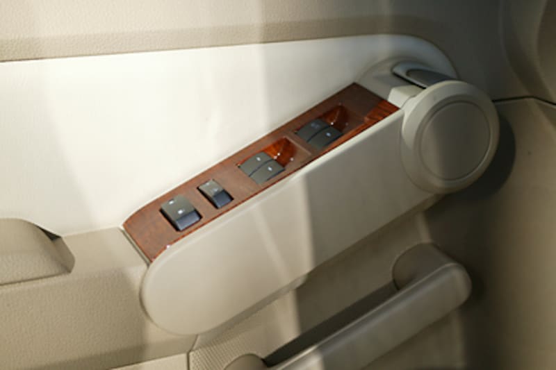 | アームレスト先端の、ドアリリースハンドルも、指を伸ばした時に自然に触れる位置にある面白いデザインだ。 |