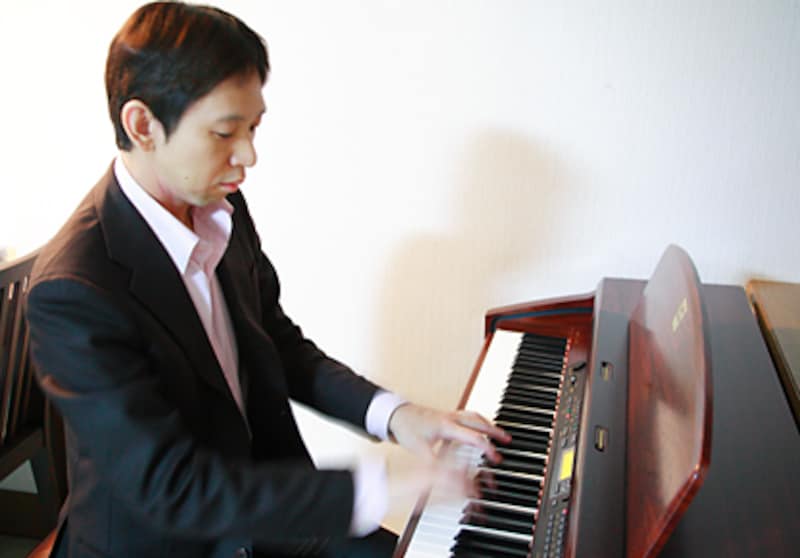 エレベーターで高層階に上がり、部屋に入ると片隅にはピアノが。「ピアノは小さい頃から弾いていて、クラッシックが好きです」と言って三村さんはブラームスを弾き出した。