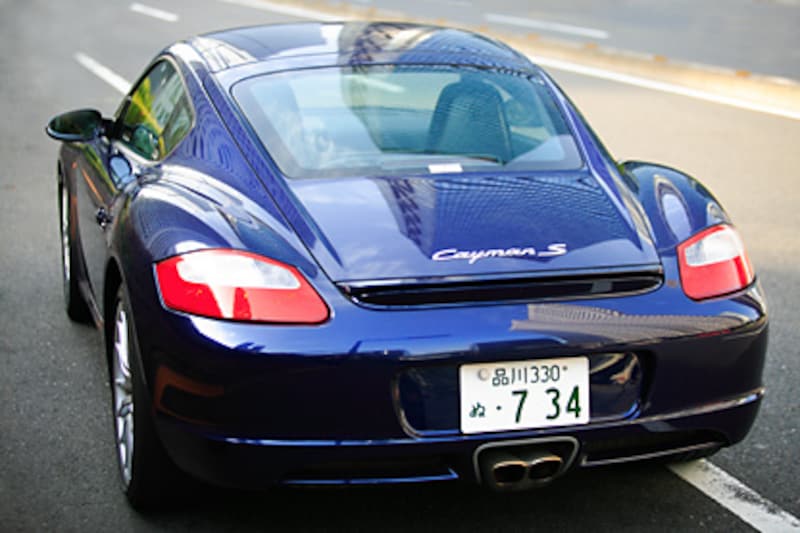 | ボクスターと共通のテールランプを使いながら、全く異なる印象のケイマンSのリアビュー。 |