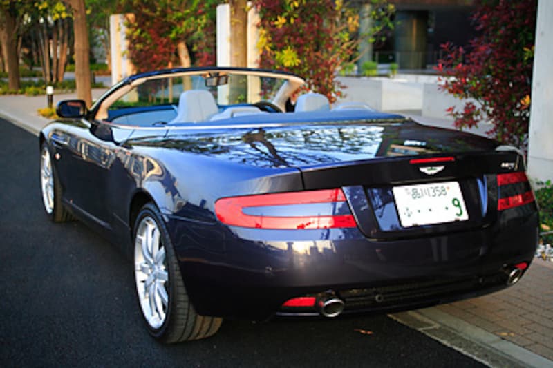 アストンマーティンのDB9は、6L V12 最高出力450psのエンジンを積み、4710×1875×1270mm(全長×全幅×全高)、ホイールベース2740mmの大型の2ドアクーペGTだ。そしてそのコンバーチブル版がヴォランテ。DB9はヴォランテでも、流れるような美しいスタイリングを見せてくれる。