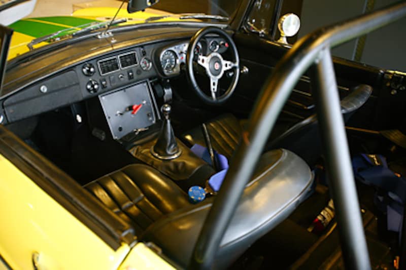 | MG Bのインテリア。このMG Bで、石井さんはレースに参戦している。 |