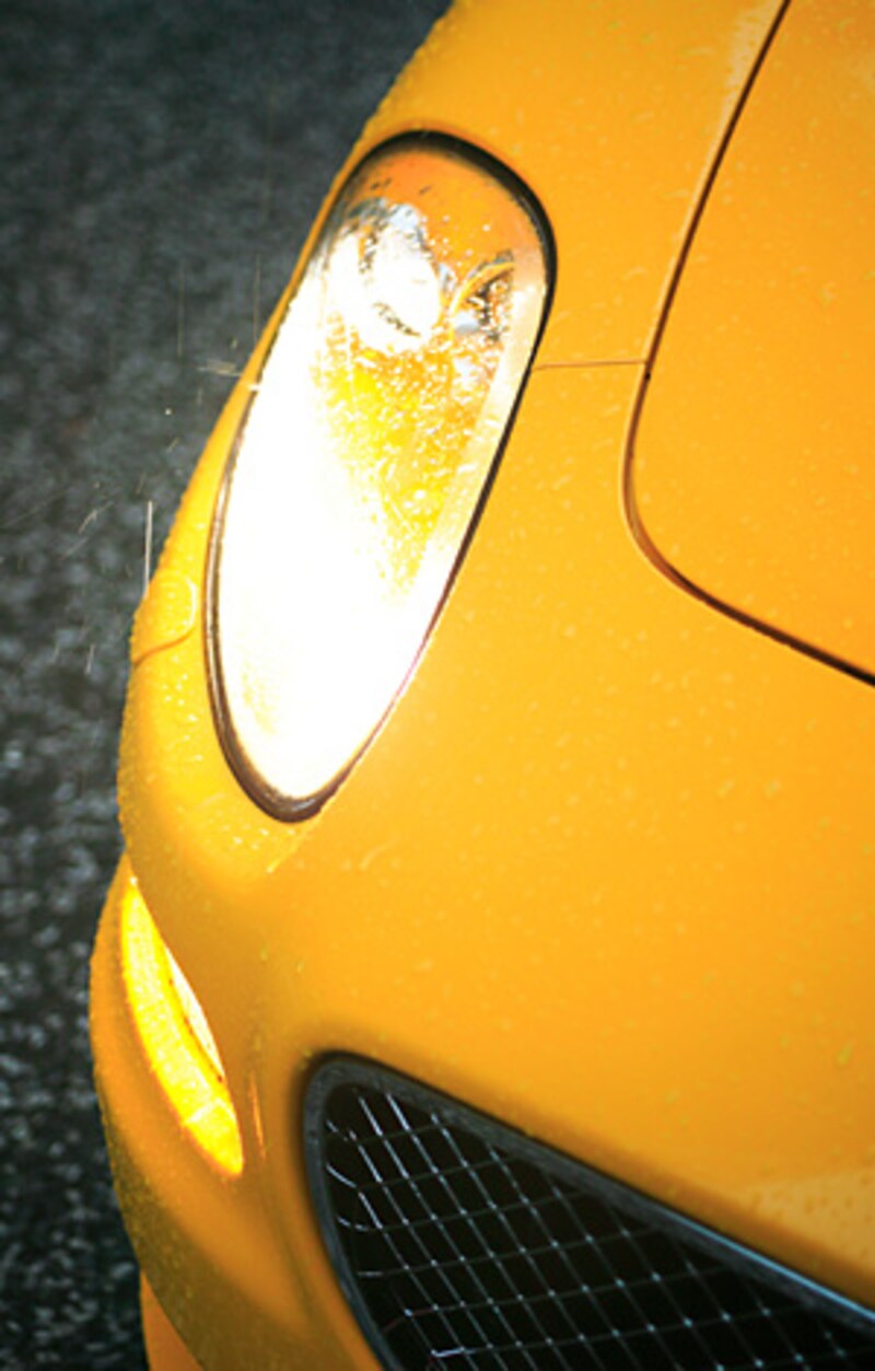 | ジャロ グラントゥーリスモと呼ばれる濃い黄色は、ハレの色だ。ヘッドランプにつく後退角は、フロントオーバーハングの視覚的な重さを減らし、前進感を強調する。 |