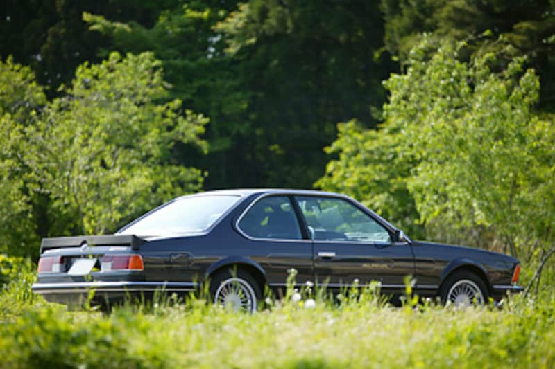 まず見せて頂いたのはB7 TURBO。BMW 635csiの3.4Lの直6を、KKKターボで330psにしたモデルだ。6シリーズは当時、「世界で一番美しいクーペ」と言われたモデル。鮫のような逆スラントノーズや、低いベルトラインが特徴的だ。