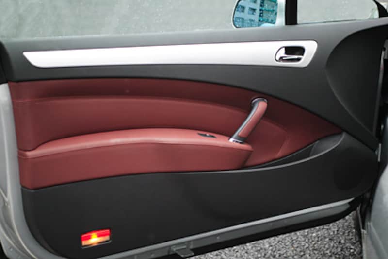 | ドアトリムもレザー。ドアトリム上部、ダッシュボード前面、ステアリングホイールにはアルミインサートトリムが。 |