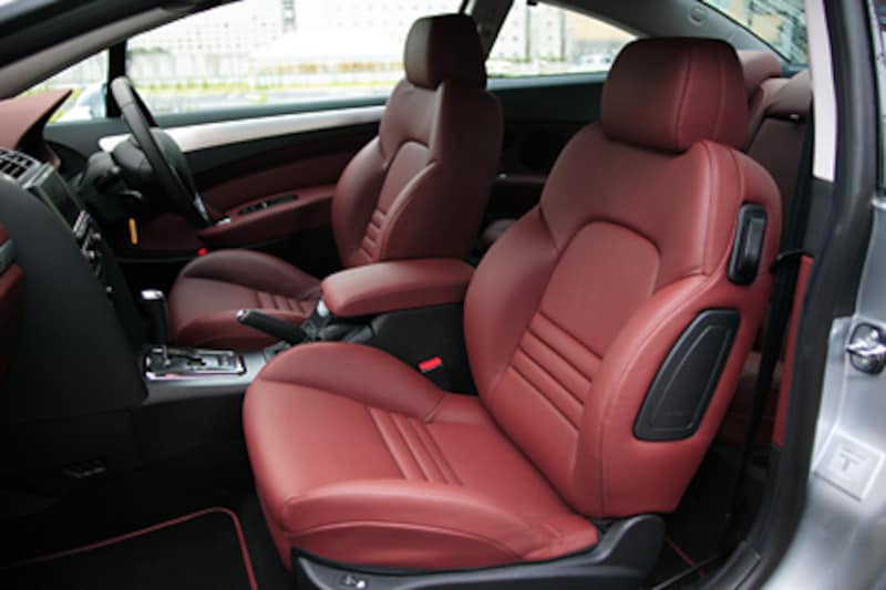 | 座面が広く、サイドサポートにも優れるフロントシート。たっぷりとしたサイズと張りのある形状が贅沢だ。そのシートポジションは407セダンに比べ、20mm低く9mm後方のボディ中央に位置し、スポーティーさを助長する。 |
