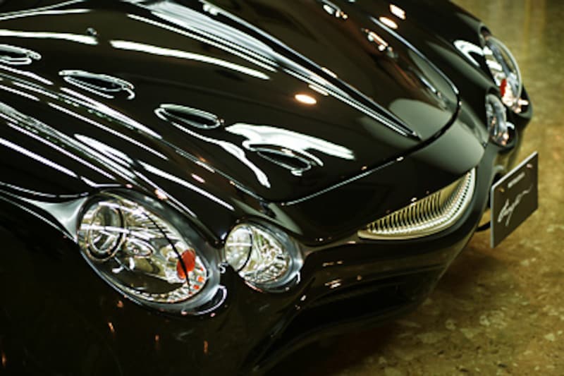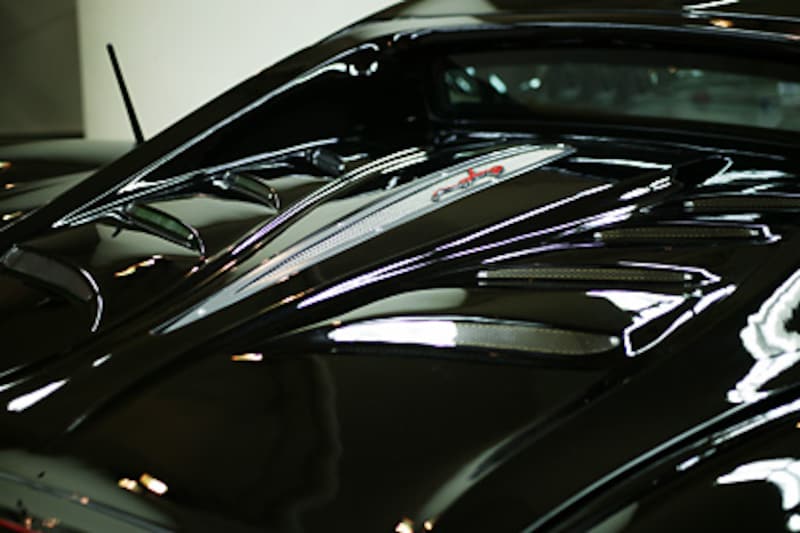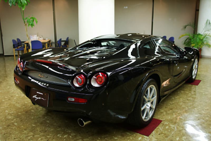 全長×全幅×全高は(4560×2035×1180mm)、ホイールベースは2600mm。たとえば、フェラーリF430より、低く長く幅広い。そのデザインは一目見て大蛇(オロチ)。フロントは大蛇の顔。ヘッドランプは大蛇の目。ボンネット上には、フロントにもリアにも、大蛇のピットをイメージした8つの穴。そしてうねるような、おどろおどろしい大蛇のボディ。
