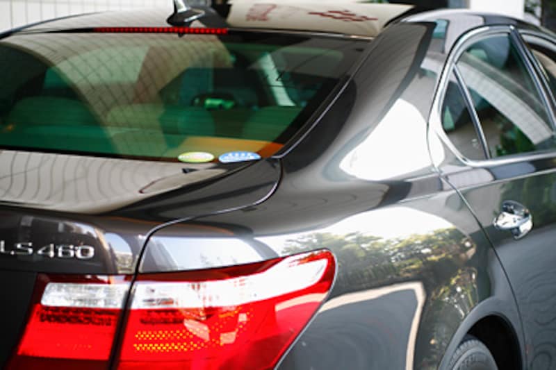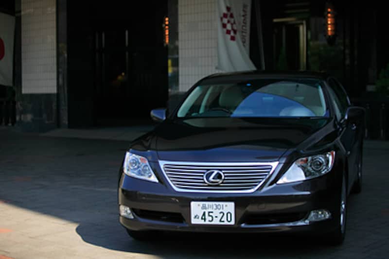 2005年モーターショーでLSのコンセプトカーを見た時に、いい意味での「がっしりとした重さ」を感じた。その印象は、生産車でも変わらない。その秘密は、レクサスでは「立体の勘合と融合」と言っているが、ボディ側面はドア断面からボンネットへ続く丸い断面の円柱に、ベルトラインの直方体の断面がそれを突き破るようにフロントでは「勘合」し、リアに行くにしたがってその突出量が減り「融合」する。