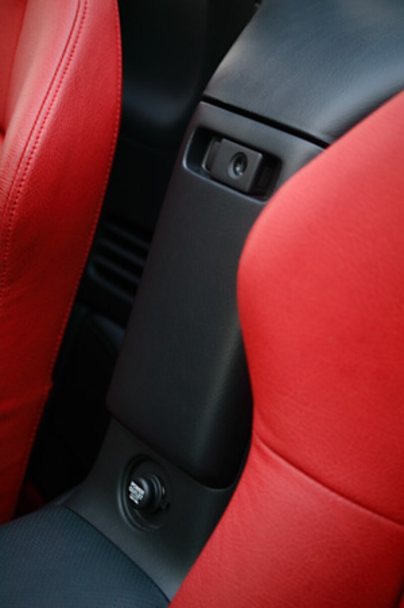 | コックピットタイプのドライバーオリエンテッドなデザイン。「ハイXボーンフレーム」の太く高い構造体が、そのままセンターコンソールになっている。レッドはシートやカーペット以外にも、インパネやドアにも挿し色として入ると、スポーツカーらしく尚華やかで美しいだろう。 |