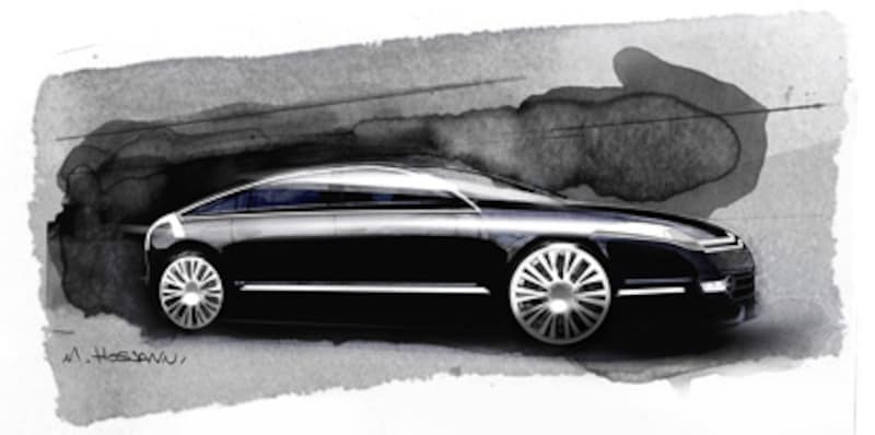| C6のデザインスケッチ。全体のボディシルエットは、大きな紡錘形。 画像提供:シトロエン・ジャポン |