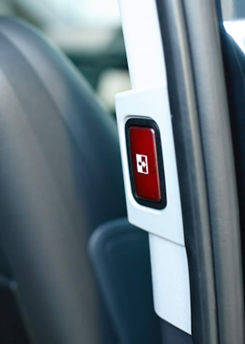 | 電動スライドのスイッチオはアウター、インナーのドアハンドル、インテリアBピラー部、センターコンソール部にある。画像はBピラー部スイッチ。 |