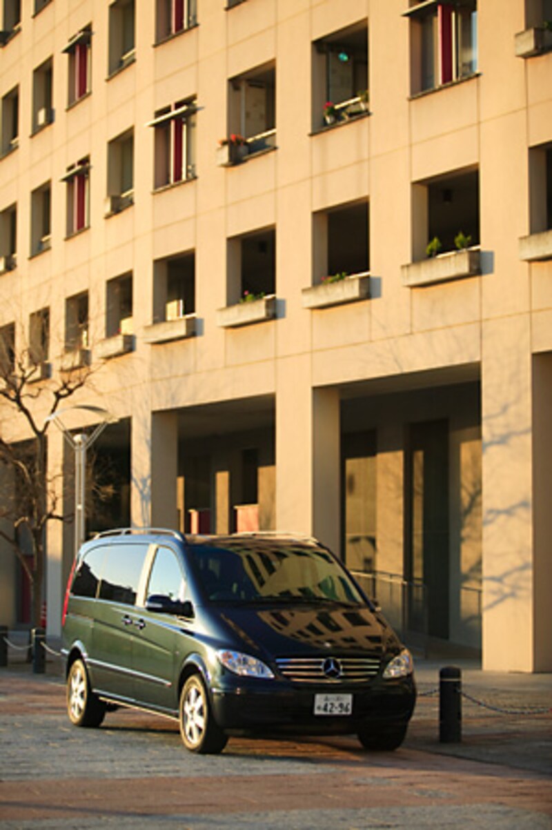 しかしカッチしたシートやボディ、ほとんど箱のようなエクステリアデザインを採用して得た、広大なインテリアスペース。その広い居住性、機能的な移動するシート、テーブルなどのアイテムを知ってしまうと、Vクラスからイメージできる世界は広がる。それはシンプルな素材ゆえの可能性の大きさだ。一般家庭のミニバンとしてはもちろん、移動オフィス、芸能人の移動車、ロケバス、リムジン、ファッションメーカーのワゴン、ホビールームとして・・・・その使い方は、無限大に広がっていくだろう。