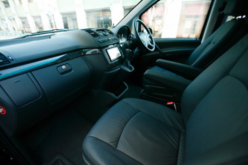 5.1chオーディオやリアTV、オットマンや間接照明などの豪華装備を備える国産1Boxと比べれば、質素とも言えるVクラス。インテリアもボディデザインも、色気はなく質実剛健といった雰囲気。