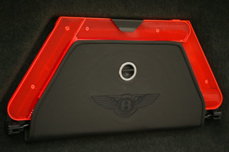 | トランクリッド裏には、三角表示板と、工具の入ったレザーケース。 |