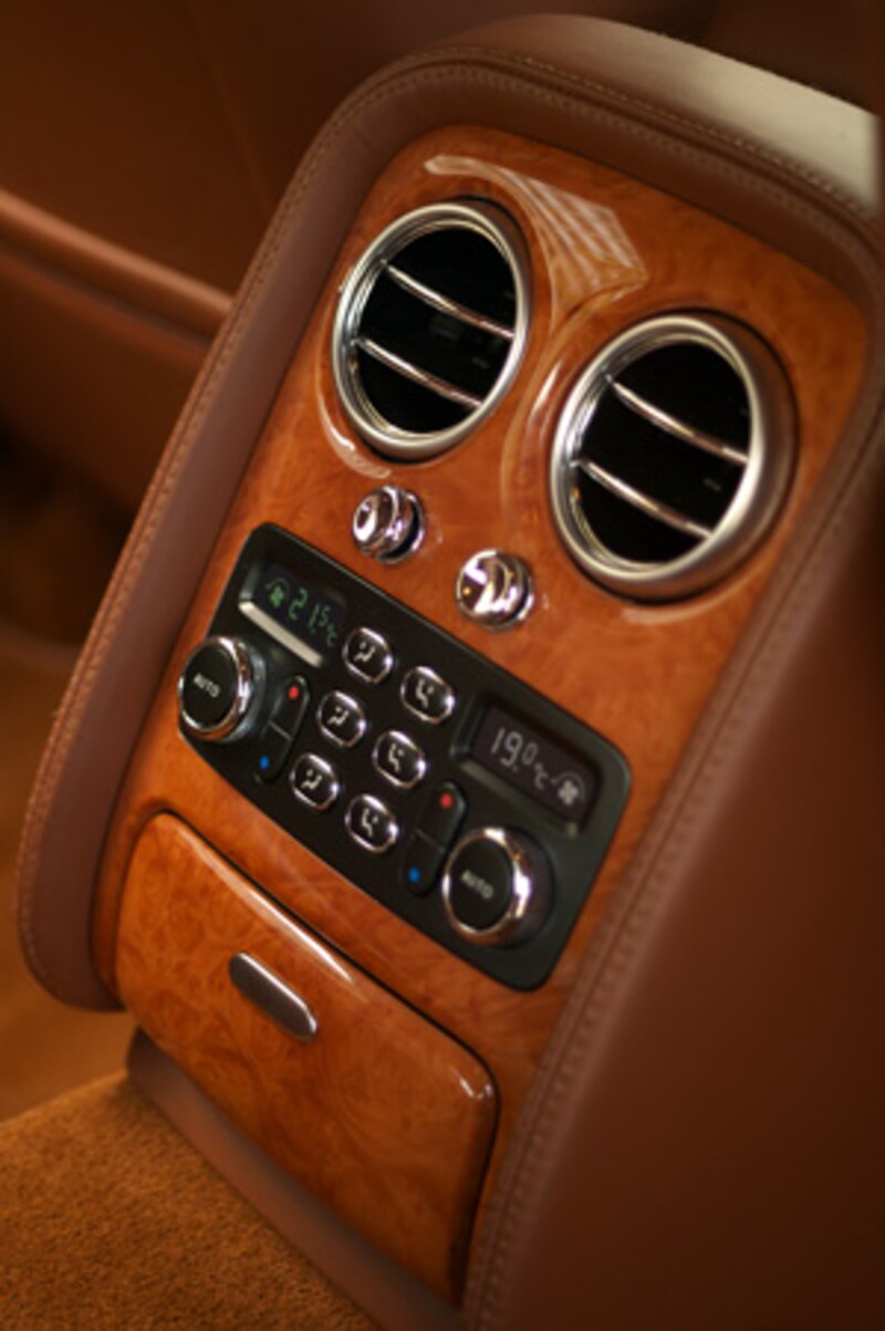 | リアコンソールにも見える、ブルズアイベンチレーションアウトレットとオルガンストップコントロール。リアも左右別々に温度調整が可能。 |
