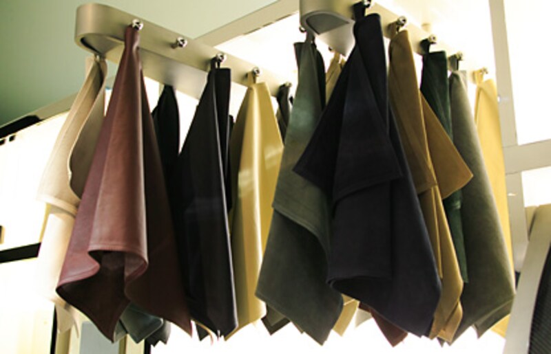 | レザーやヌバックの見本も大きく、実車を想像しやすい。 |