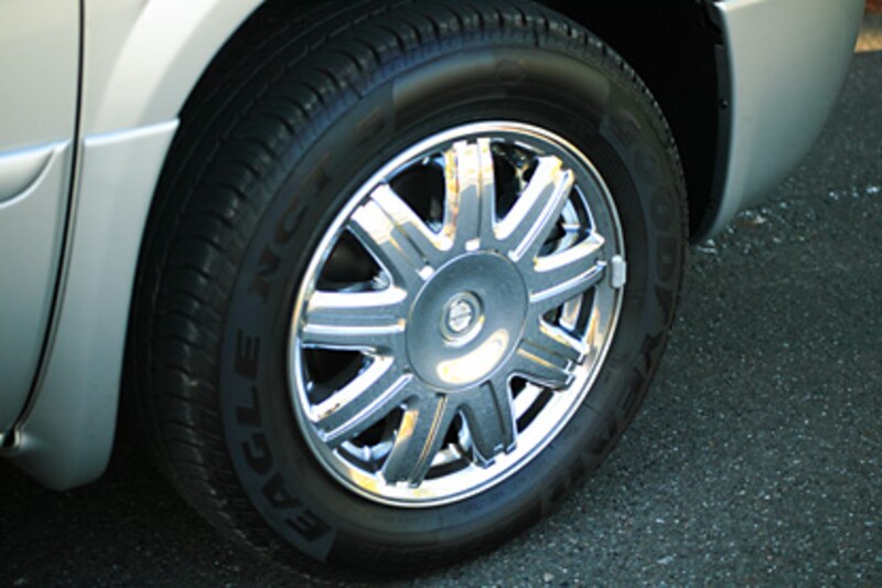 | グランドボイジャーのホイールは、アメ車らしく光り輝くクロームクラテッドアルミホイール。 |