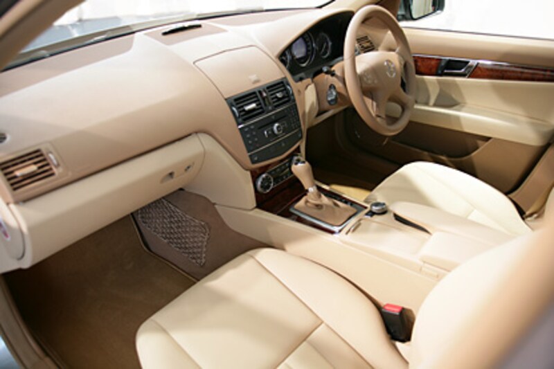 | エレガンスのインテリアカラーは写真のカシミヤベージュの2トーンと、アバンギャルドに順ずるブラック一色、またはアッパー部のブラックとロアー部のグレイの2トーンに分けた、3種類のうちから選べる。本木目はウォールナットウッド。カシミヤベージュのインテリアは、明るく落ち着けるインテリアだ。 |