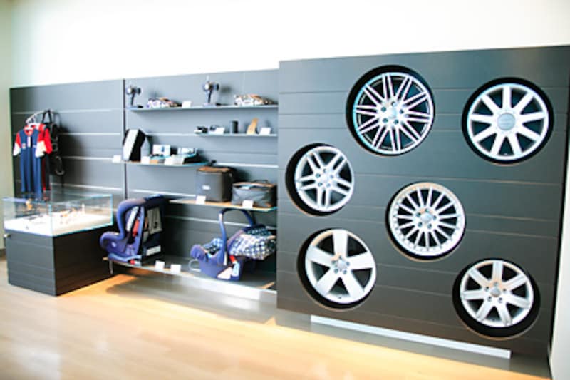 | アルミホイールをはじめとするアウディ用品の展示も。 |
