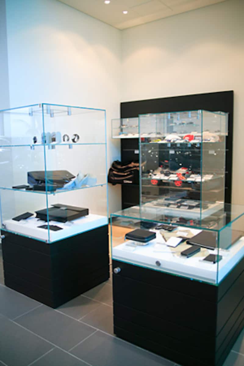 | さらにバッグや財布など、アウディのグッズの展示。 |
