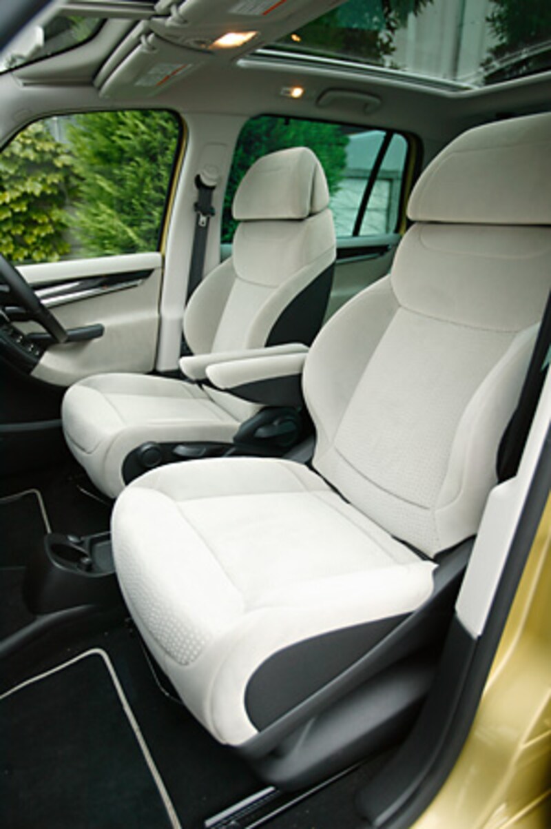 | ゆったりとしたフロントシート。広い全幅を活かした広いシート間。エルボールームは、フロントで1510mmだ。 |
