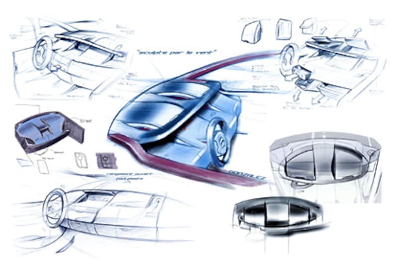 | ダッシュボードの広い棚面。操作性と開放感を両立させたデザイン。豊富な収納スペースが分かるスケッチ。 画像提供:シトロエン・ジャポン |