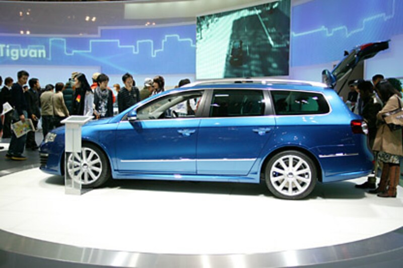 | パサート ヴァリアントに加わる最上級車種R36。VWのワッペングリル、バンパー部のエアインテークは、従来車種より大きく広げられている。 |
