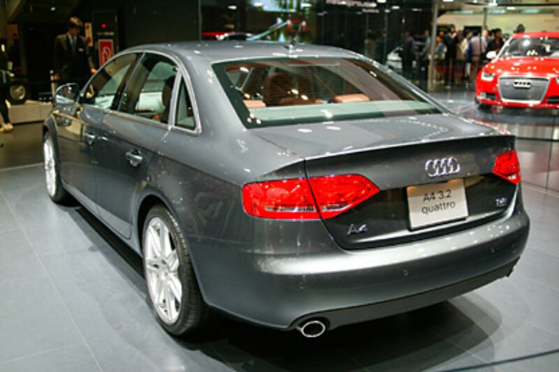 | 新型A4。全長4703mm、全幅1826mm、ホイールベース2808mm。実に先代比で118mmも長く、56mmも幅広く、ホイールベースに至っては163mmも長くなった。 |
