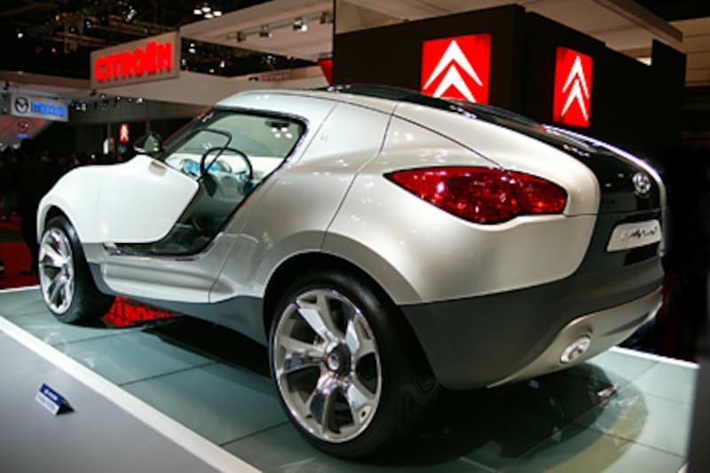 | ヒュンダイのコンセプトカー、クロスオーバーSUVのカルマック。ボディにはプラスティック素材を使用し、従来素材比-60kgの軽量化を実現。 |