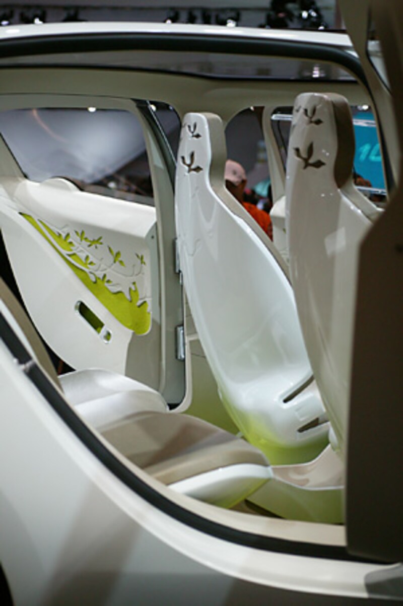 | インテリアは蝶や花のデザインで、環境コンシャスを謳う。 |