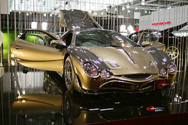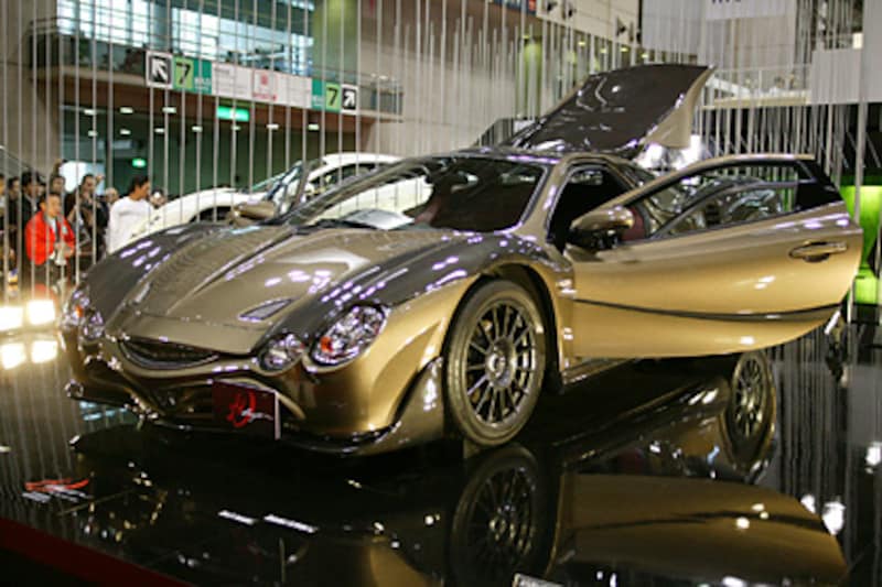 | オリジナルのオロチ。展示ステージは、竹やぶに潜む大蛇のイメージか?そのデザイン、コンセプト、ファッションデザイナー義志とのコラボレーションなど「和」を意識したつくりは頼もしい。価格は1,197万円。 |