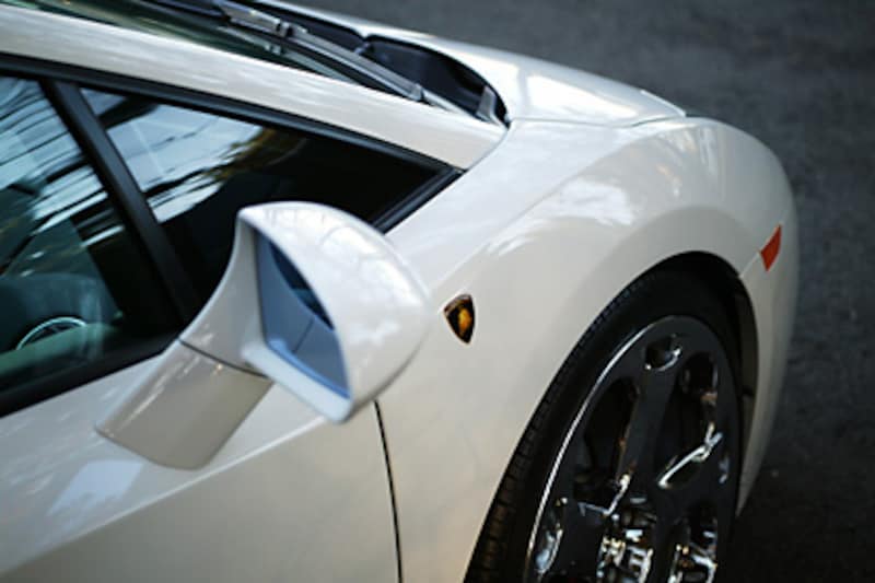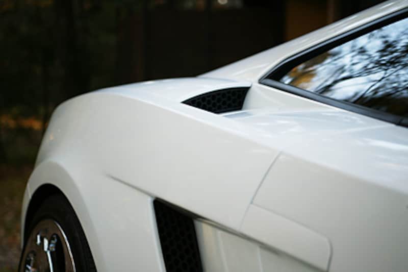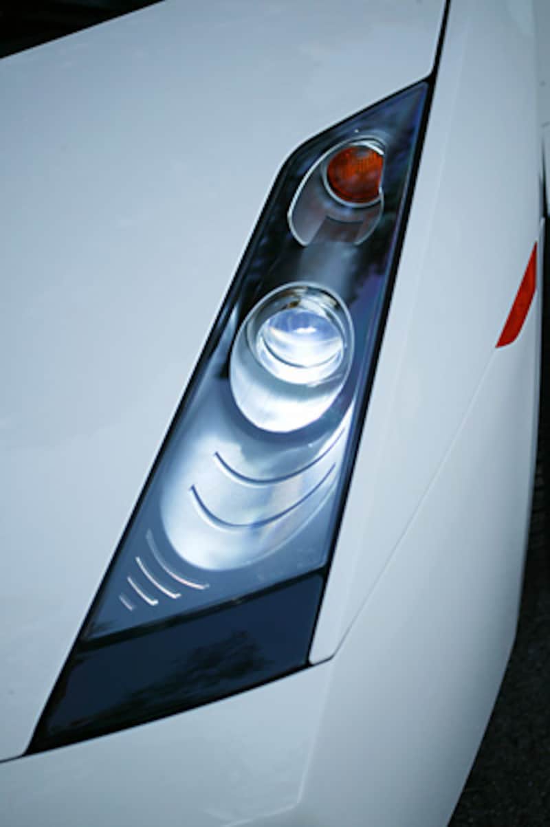 | 大谷さんのランボルギーニ ガヤルド。4300×1900×1165mm(全長×全幅×全高)。ホイールベース2560mm。低く、短く、幅広い。フロントオーバーハングは長く、リアオーバーハングが短いプロポーションは、停まっている時でさえ前進感を強調する。そしてボディそのものがウェッジシェイプを描く。鋭角的でモダンなスタイリング。 |