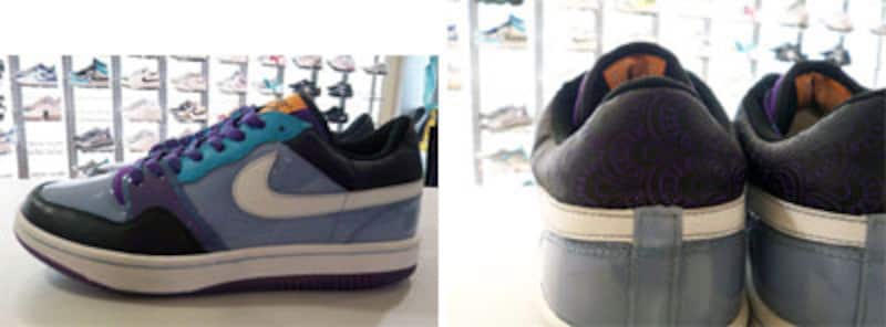| 左/ナイキ コート フォース プレミアム¥13,650、右/ヒールには鯉のぼりをイメージしたパターンが。ちなみにクリアソールの裏にも鯉のぼり的グラフィックが入ってます |