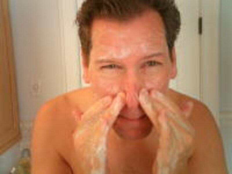 | 男性のスキンケアの基本は洗顔と保湿。それに加え、オイリー肌の人は、スクラブ洗顔剤で週に一度、毛穴をきれいにするのがよい。 |