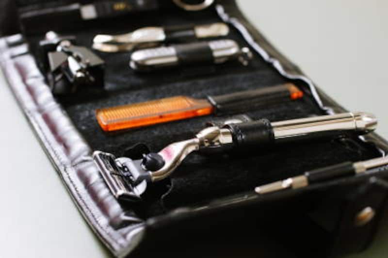 | ヒゲの調整は、ヒゲ手入れ用のはさみとくしを使い、刈り込んでいく。 グルーミングセット(税込 36,750円) |