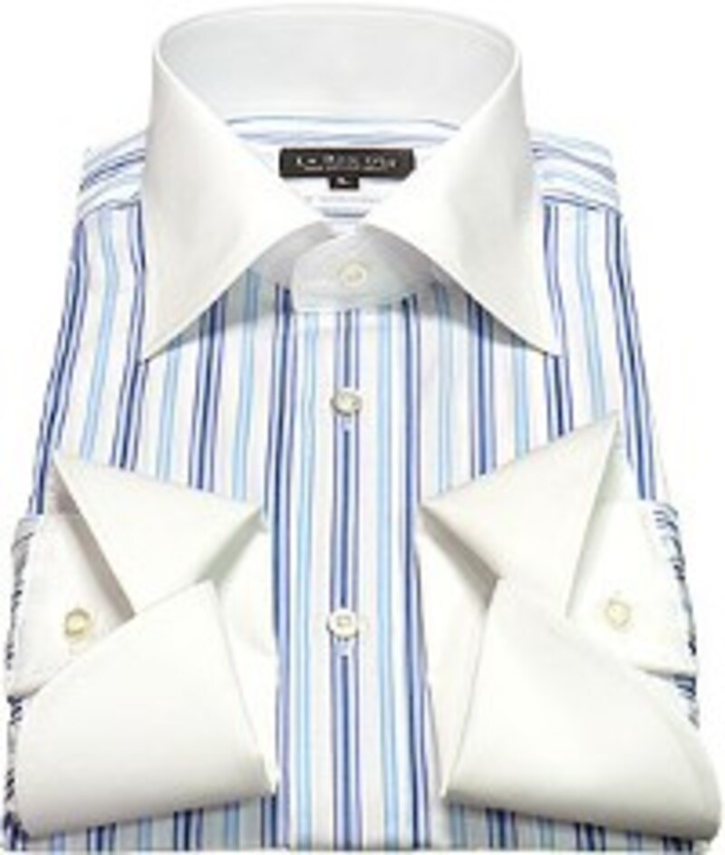 衿とカフスが白く、夏らしい爽快感と清潔さを印象づけることができるシャツ。ノータイで着ても、白い衿がアイキャッチとなって襟元をスッキリときれいに見せてくれる。正統派で、品よく演出したい人にはこのクレリック・シャツがオススメだ。