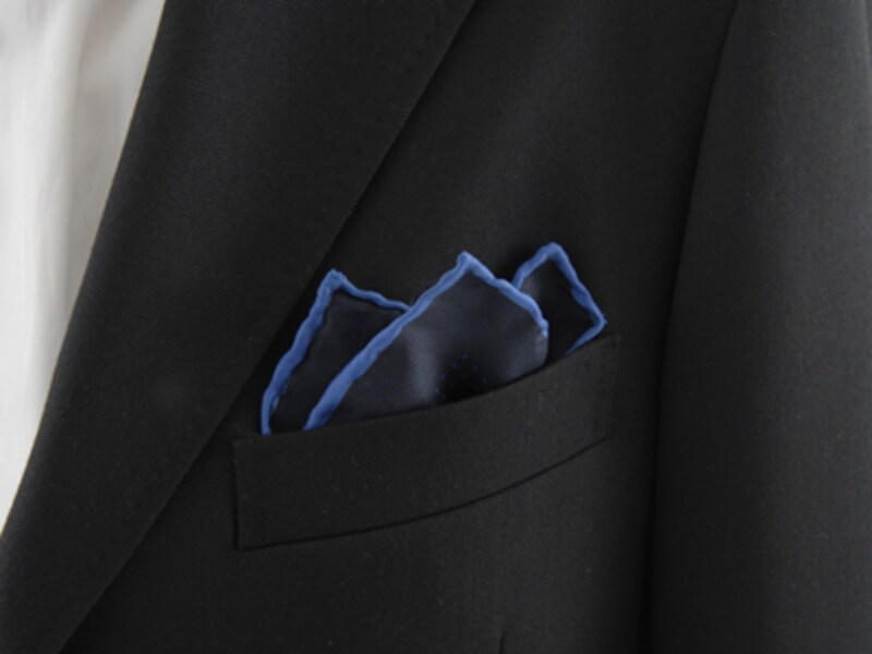 そして、忘れてはならないのが、ポケットチーフ。ポケットチーフをさりげなくスーツの胸元に挿すのも、洗練されたセクシーさを印象づけるのに役立ちます。