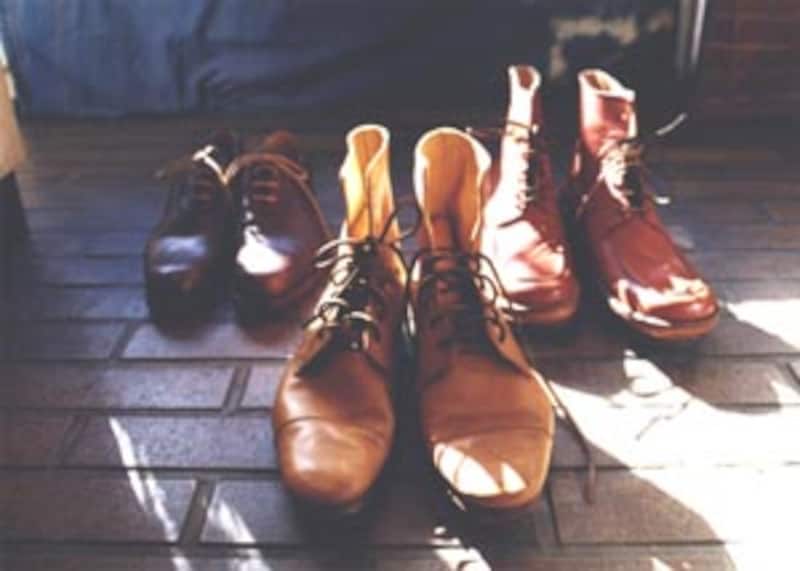 この靴の底付け名称はくるりん製法。まさかこんな名称が実際にあるわけもなく、ソートー古い時代にあった製法で文献にもその名は残っておらず、作り方からイメージしてつけたモノだそーです。かつて競輪選手の靴なんかに採用されていた製法で、袋縫いの一種なのだけど、その吸いつく感触にはびっくりしました。手前がその靴で、右奥は舟底、左奥はハンドソーンウエルト。●シュー・メーキング・イズ・マイ・ライフ5万円(手前)、5万2000円(右奥)、7万円(左奥)/そのみつtel.03.3871.2033