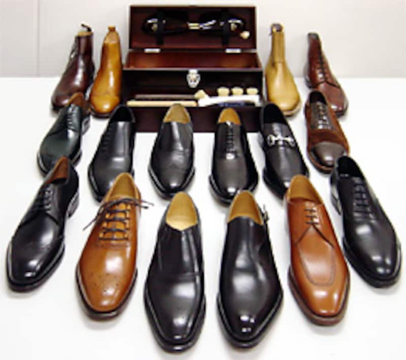 一軒目にお邪魔したのは今年25周年を迎えるワールドフットウエアギャラリー。この秋より、「アニバーサリーフェスタ」と題するイベントを立ち上げる。これは米百貨店ノードストロームに範を垂れるもので、シーズンインに際し、選りすぐりの逸品をくくり、一足早く提案しようというもの。ここでしか買えない別注品も盛り沢山で、中には1~2割、プロパーより価格を抑えて提供する靴もある。エントリー・モデルは新規投入の「シルバノ・ラッタンジ」のほか、おなじみの「サントーニ」「ロブス」まで計16ブランド。期間は8月25日~9月5日まで。