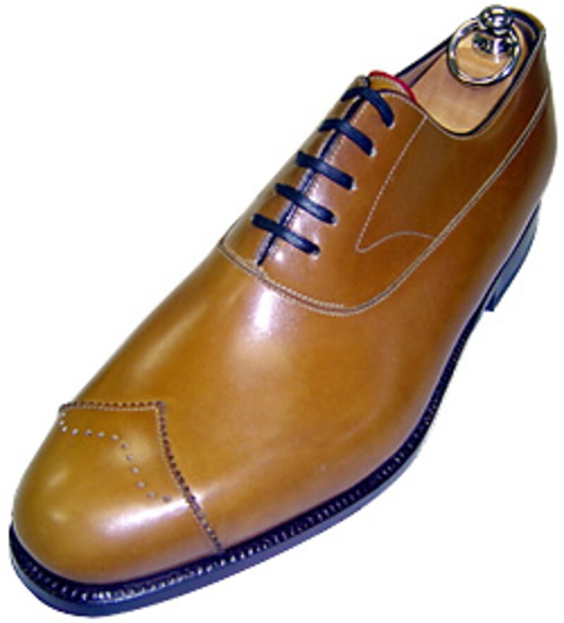 コレクションを見てもらえばわかるように、特に奇を衒っているわけではない。話を聞いたら、それぞれのブランドの持ち味を生かしつつ、TPに相応しい方向でまとめていったのだとか。唯一の変り種は、筒サイドにシューレースを配した、ゴーインに名前をつければサイドギリーシューズ(トップページを飾った靴)。担当したのは一緒に呑んだこともある職人、吉見鉄平。変なヤツです。*写真はドイツの名靴エドワード・マイヤー。マイヤー自らデザインしたのだとか。爪先のパーフォレーションのイメージは富士山だそうです。\143,850。●問い合わせ/トレーディングポスト青山店TEL.03-5474-8725