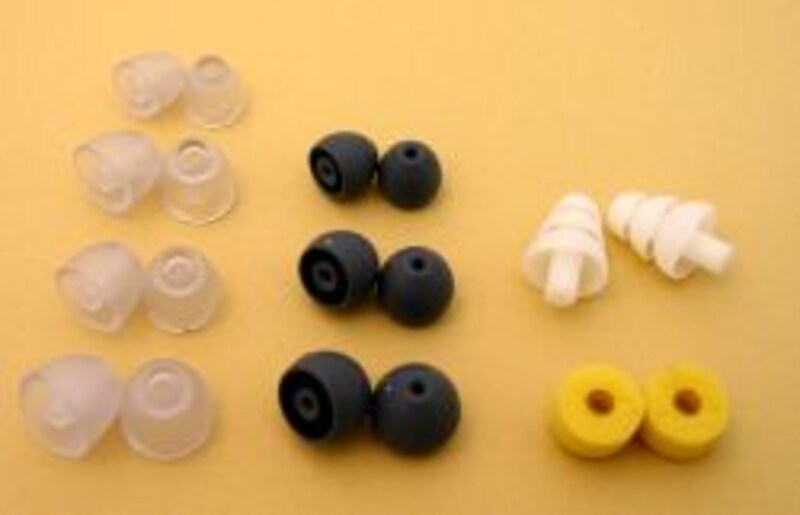 このヘッドフォンが凄いのは、何より圧倒的な遮音性です。様々な形態のイヤーパッドが付属していて、自分の耳に合ったものを装着することができます。耳あかが入りにくい構造などの工夫もあり、どれも耳にピッタリ入るように作られています。中では、上の写真でも装着している黄色くて丸いタイプのものが最も遮音性が高く、プロのミュージシャンはほとんど、このタイプを使っているそうです。![]() |