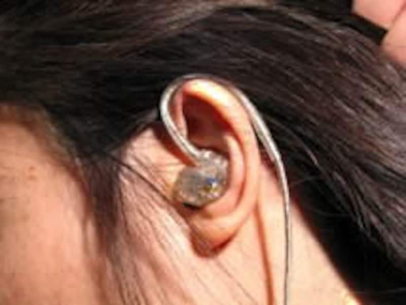 さらに、ケーブルの耳にかける部分は形を固定できるようになっているので、耳の形にケーブルを沿わせることが出来ます。これで激しい動きの中でもケーブルが動かず、耳から外れにくく、目立たないというわけです。さらに、この小さいボディにドライブを二つ内蔵して、高音域と低音域を分けて出力しています。そのため、クリアでスムーズな音が鳴るようになっているのです。
