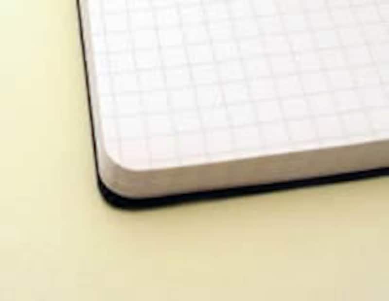 モールスキンは、6mm間隔の横罫線が入った「ルードノート」、ページ全面に5mm方眼の印刷がされた「スクエアノート」、無地の「プレーンノート」が、基本バリエーション。96枚(192ページ)の紙がしっかりと綴じられた、本当に使いやすいノートです。
